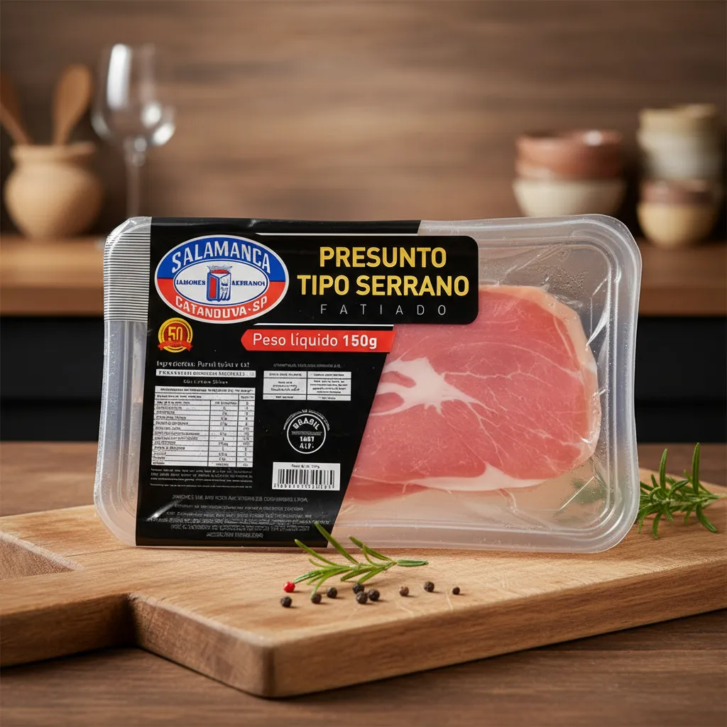Tipo: Jamon Serrano Fatiado e interfolhado em bandeja