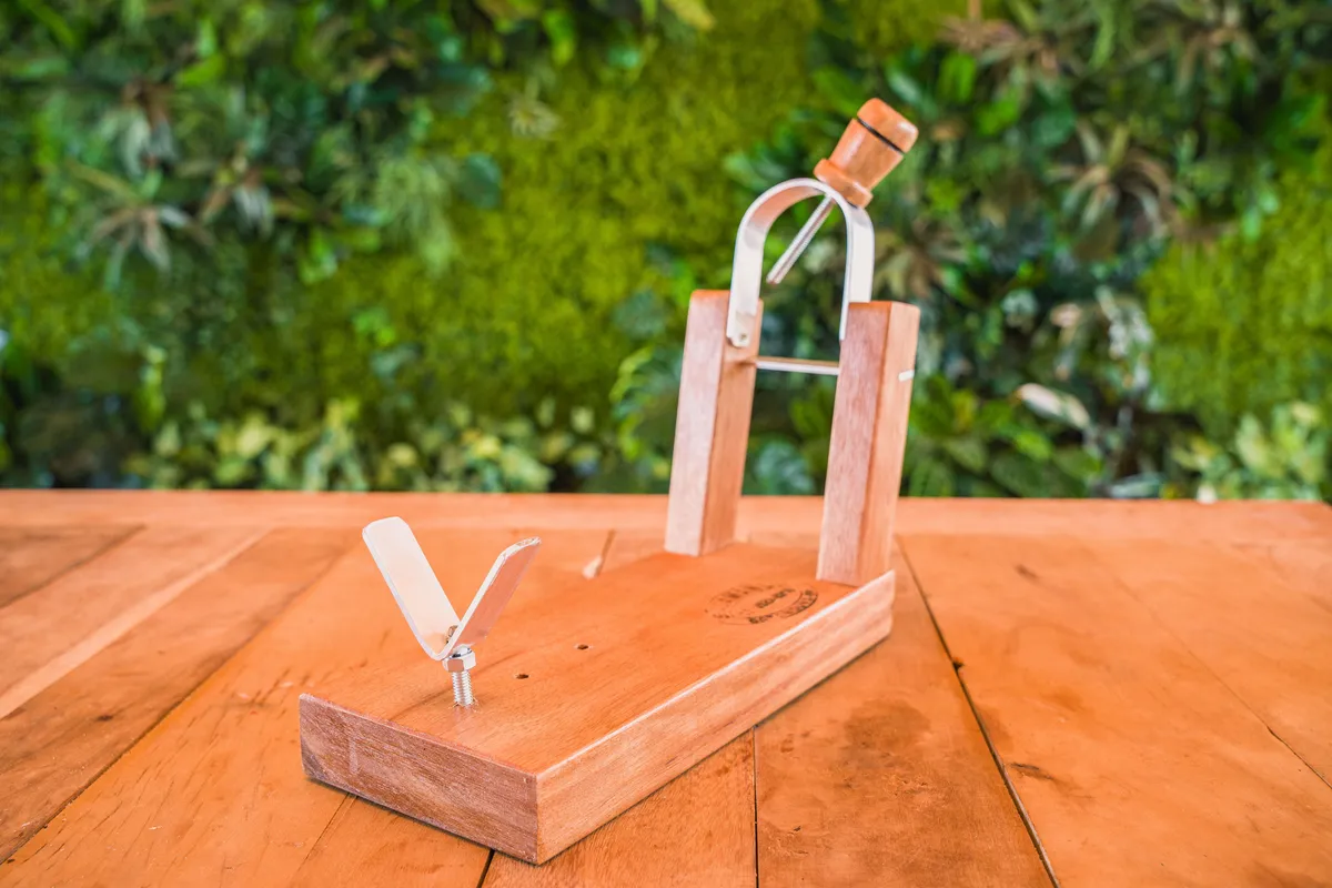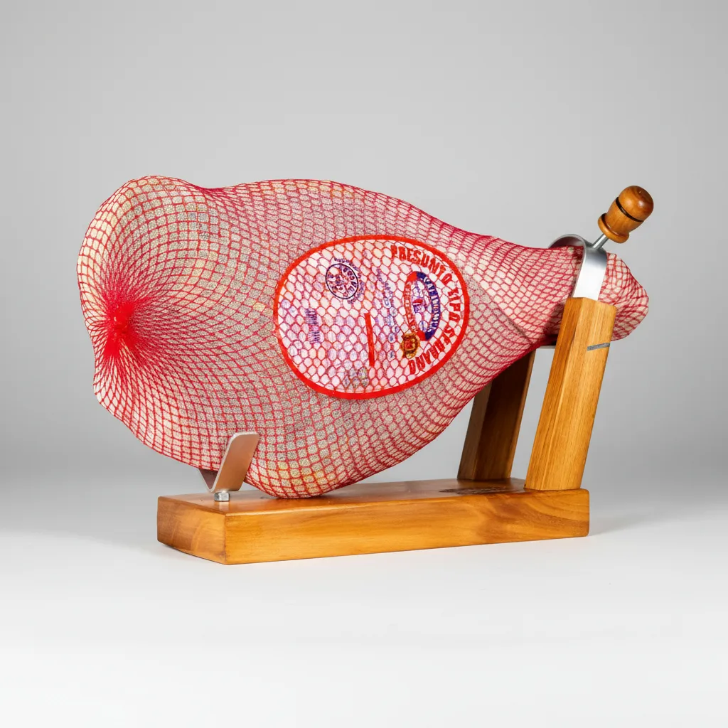 Suporte para presunto e jamon de madeira e aço, usado para manter o presunto de forma estável e segura, permitindo fatiá-lo com mais facilidade e precisão. É essencial para aproveitar todo o sabor e a textura do presunto, pois a peça é firmemente presa e pode ser girada ou inclinada para acessar todas as áreas de carne. O suporte oferece uma base sólida para fixar a peça de presunto, evitando que ela se mova durante o corte. O suporte para presunto e jamon é um acessório que proporciona o ângulo e a fixação ideais para cortar presuntos inteiros, como o presunto cru de Parma ou Serrano, em fatias finas e com o máximo aproveitamento da carne Facilidade de fatiar: Ao manter o presunto na posição correta, o suporte facilita o manuseio da faca, resultando em fatias finas e uniformes. Ajuste e rotação: Muitos suportes possuem um anel ou sistema de fixação que permite girar a peça, facilitando o acesso a todas as partes do presunto. Materiais: Madeira e aço inoxidável 1 Unidade de aprox. 1,9 kg de peso